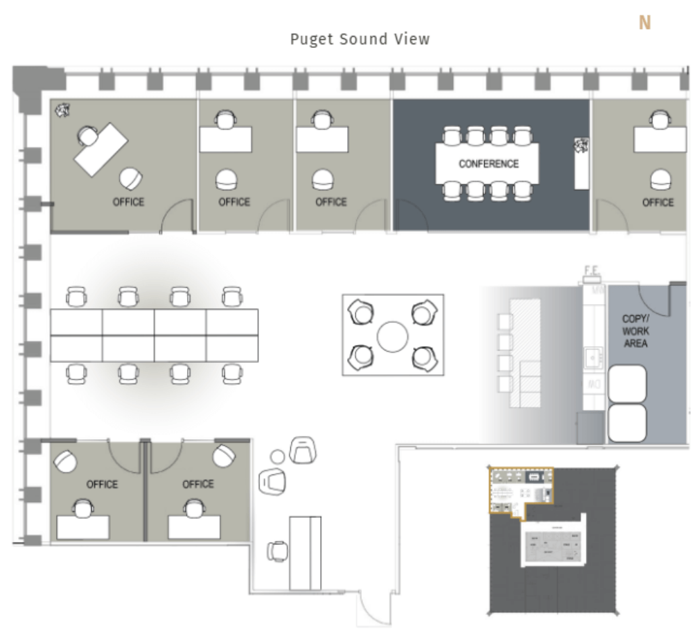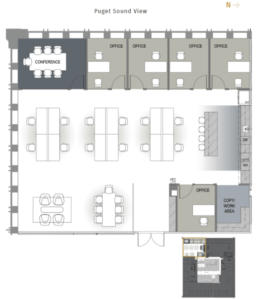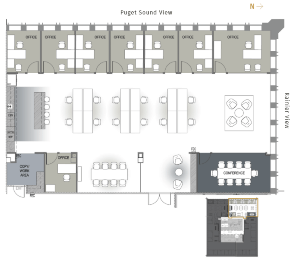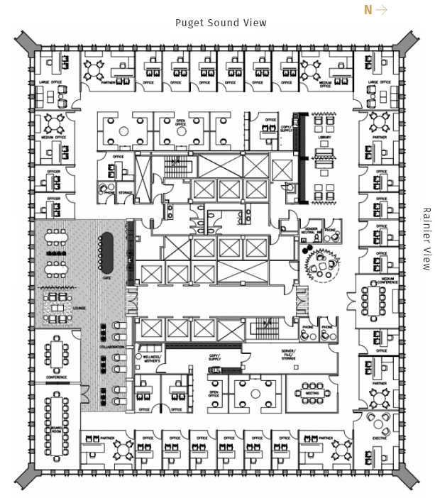 Transform your workday at Safeco Plaza, where flexible and efficient open layouts meet breathtaking city and Mt. Ranier views that inspire productivity. Discover a diverse selection of premier workspaces designed to cater to your every need—whether you’re looking for a contiguous block, full floors, or cozy medium to small suites. Here, there’s an ideal space for everyone.