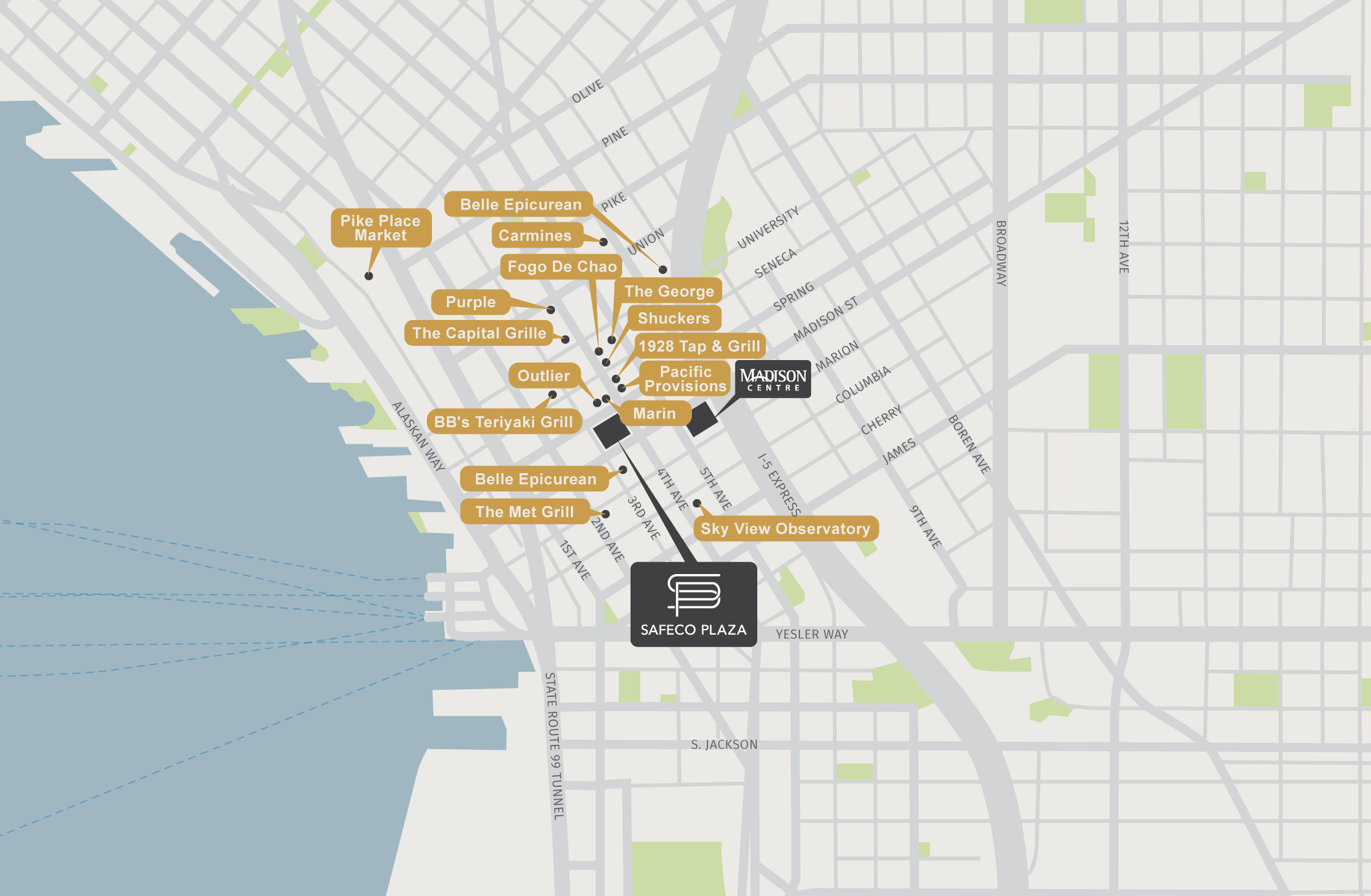 Nestled in downtown Seattle, Safeco Plaza offers a vibrant blend of urban energy and convenience. It’s located in the heart of the business district, providing easy access to major corporations and financial institutions. Just a short walk away, you’ll find a variety of cultural attractions, museums, theaters, and a diverse culinary scene, from upscale dining to trendy cafes. With great public transportation options nearby, Safeco Plaza is the ideal spot to experience the best of the Emerald City.