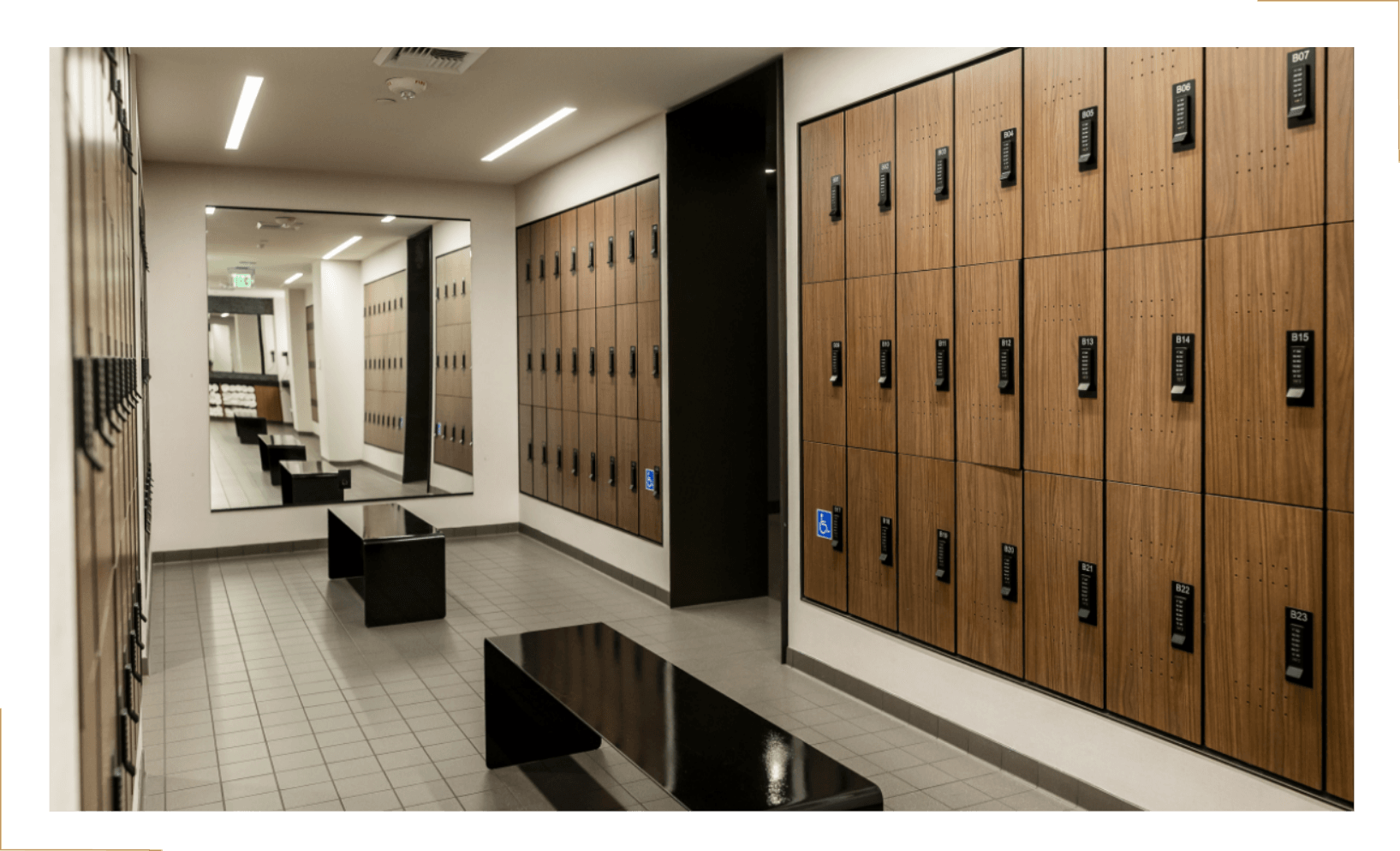 Modern locker rooms with private showers, spacious changing areas, and secure storage provide comfort and convenience for busy professionals.